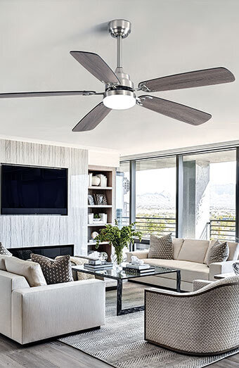 Installation or upgrade of ceiling fans with dedicated wall controllers for precise speed and direction management that complements your interior design.